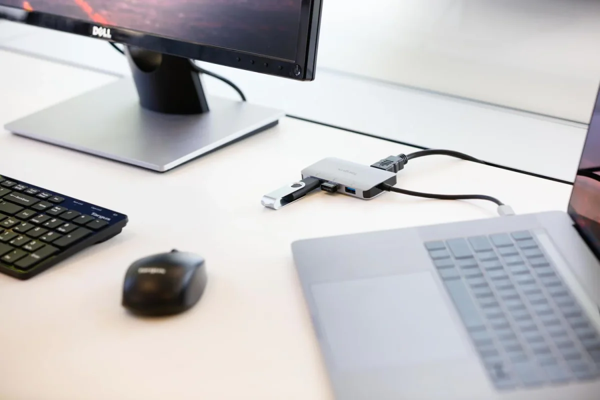 Convierte tu laptop en una estación de trabajo con el compacto adaptador HDMI 4K HDMI de video único multipuerto USB-C con 100W PD Pass-Thru. Conecta tus dispositivos habilitados para USB-C a una sola pantalla HDMI, mientras también conectas tus periféricos clave, como ratones, teclados, unidades flash o discos duros, en los puertos USB-A y USB-C. Incluso puedes mantener la cargada y encendida conectando el adaptador de corriente USB-C de su computadora portátil al puerto USB-C del adaptador. Admite hasta 100 W (20 V / 5 A) de carga máx. Este adaptador también proporciona velocidades de transferencia de hasta 5 Gbps por puerto. Compacto y liviano, es fácil de llevar contigo a donde quiera que vayas.