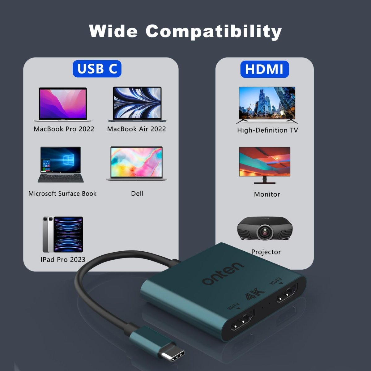- Adaptador USB C a HDMI dual: este adaptador HDMI dual puede reflejar o expandir imágenes gráficas de alta resolución a una resolución 4K dual de HDTV, monitores o proyectores. La pantalla del portátil se puede extender a dos monitores. Aumenta la productividad y eficiencia de tu trabajo. Le permite hacer diferentes proyectos en diferentes monitores. Es un accesorio USB C ideal para fotografía, programador, análisis de datos, etc