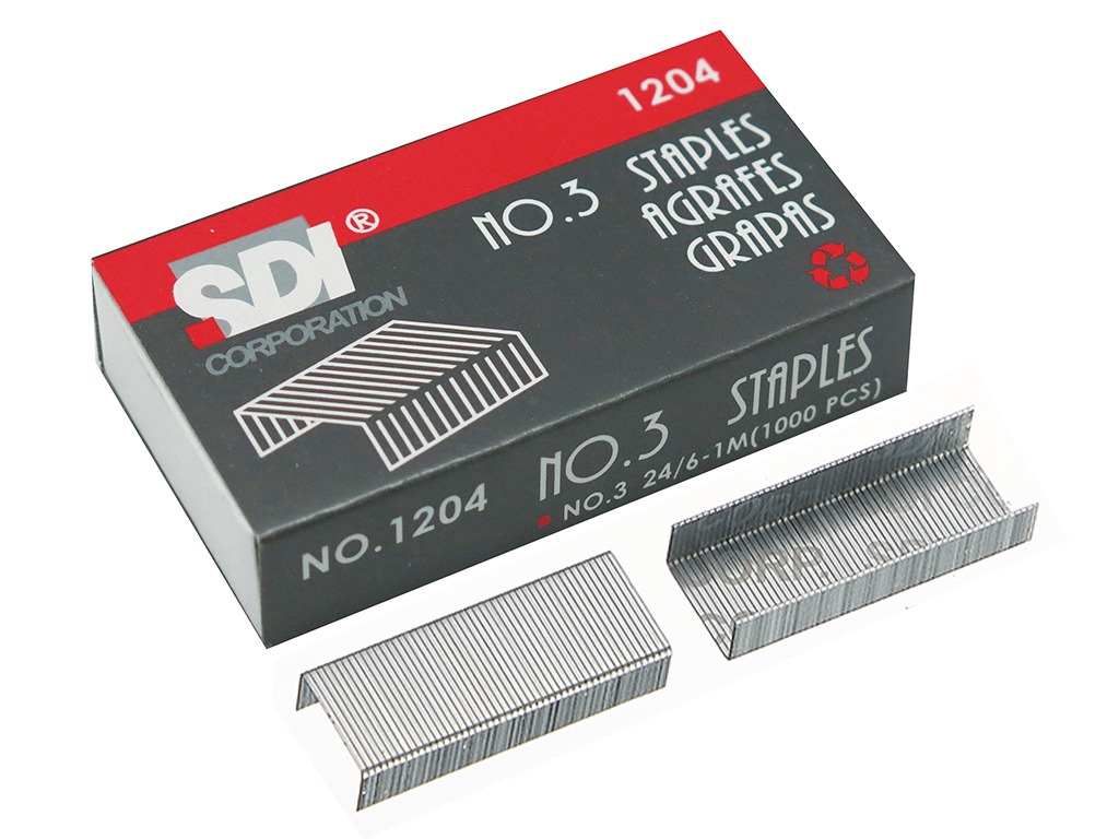 Broches SDI para engrapadora. Su exclusivo diseño de bordes biselados perfora fácilmente el papel y permite un engrapado más sencillo y sin esfuerzo. Capacidad de engrapado: 20 a 25 hojas. Caja x 1000 broches