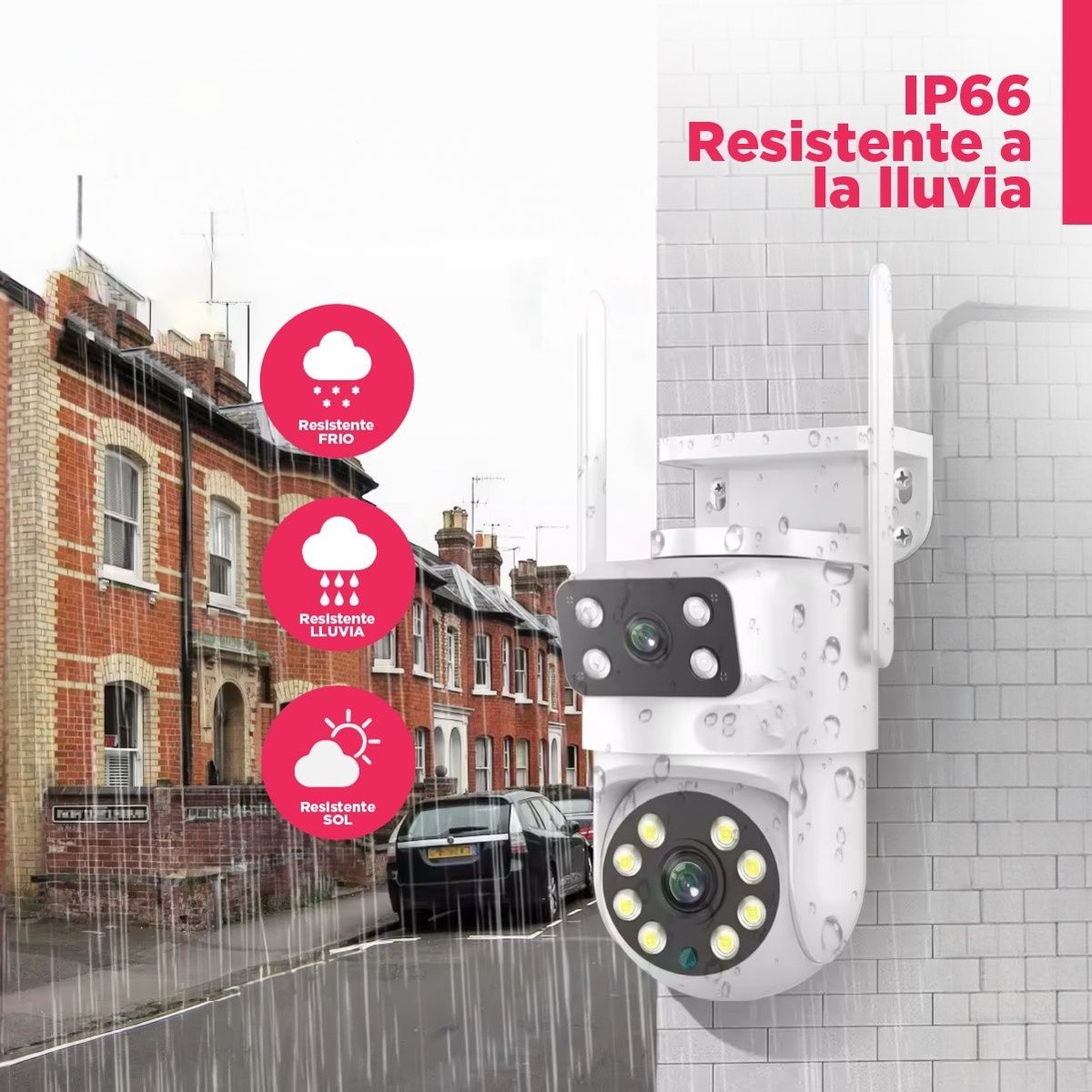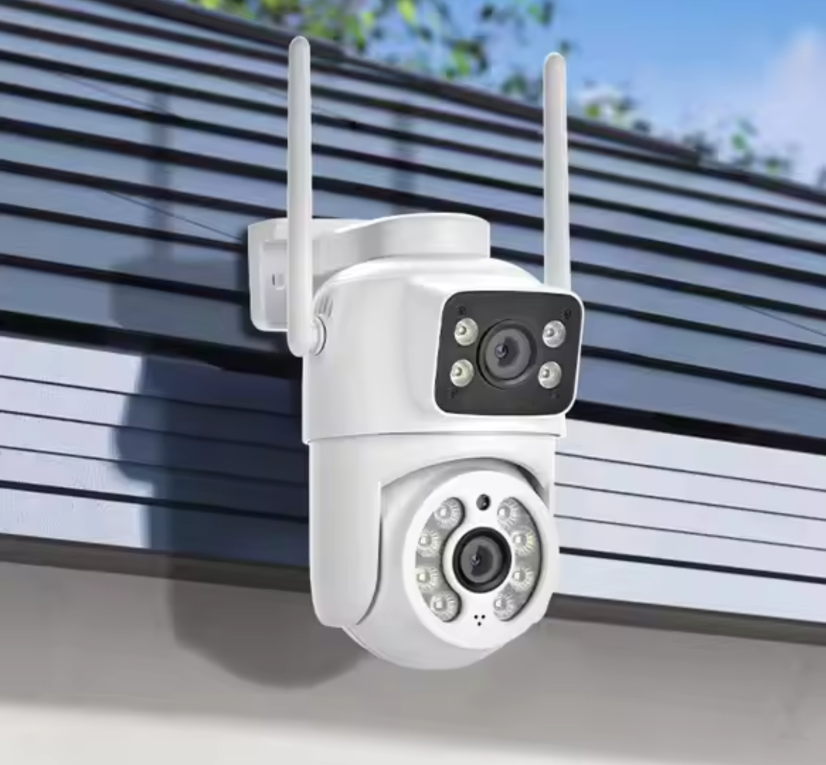 Rango de rotación horizontal de 350 y vertical de 90, solo necesitas un cámara wifi para cubrir todas las esquinas que quieras monitorear. Puedes acceder de forma remota a toda la habitación durante el día o por la noche con tu teléfono o dispositivo móvil. Impermeable, utiliza materiales de alta calidad, resiste fácilmente el mal tiempo. La mejor opción para monitoreo al aire libre