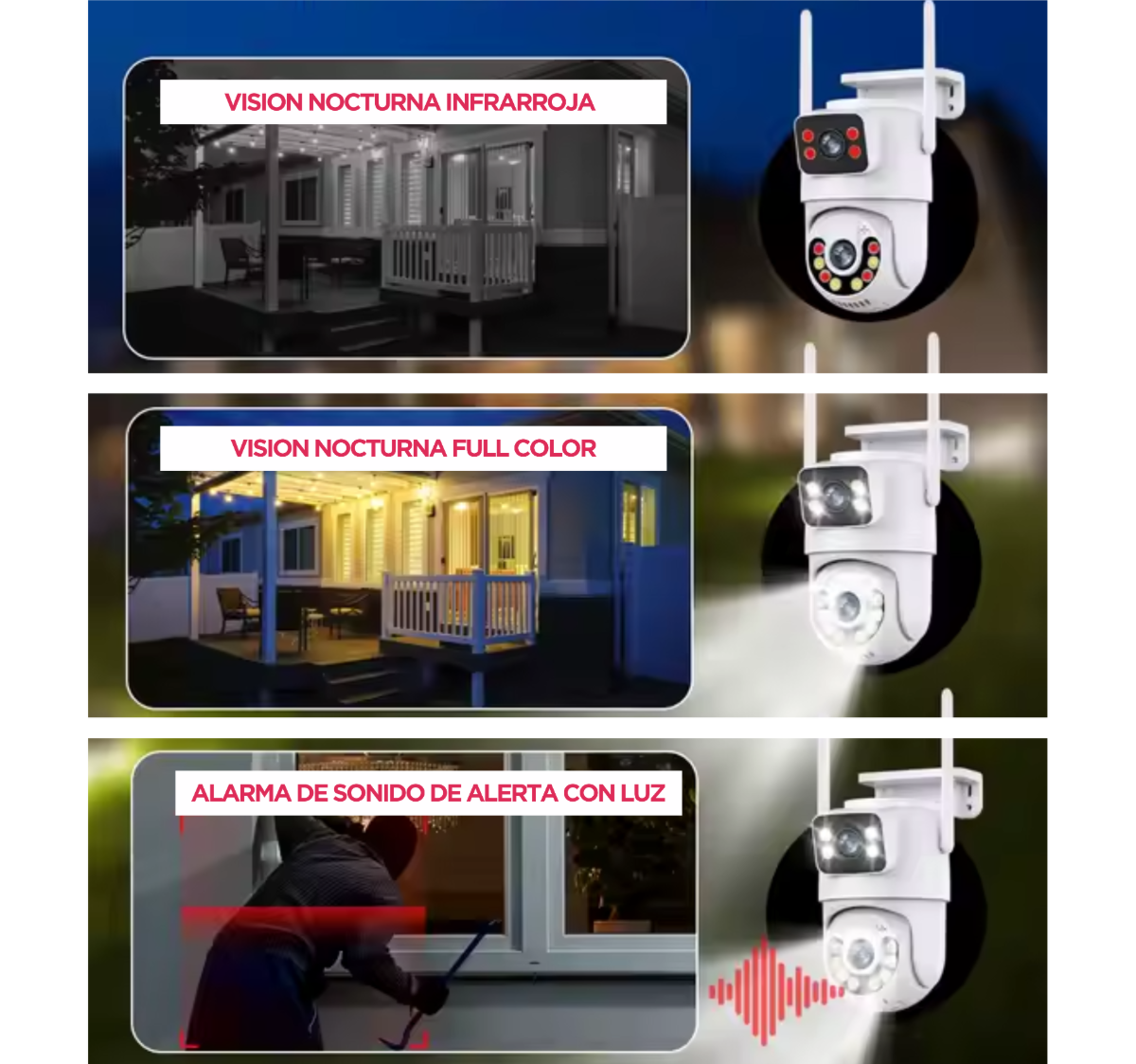 Audio de 2 vías y 3 modos de visión nocturna: