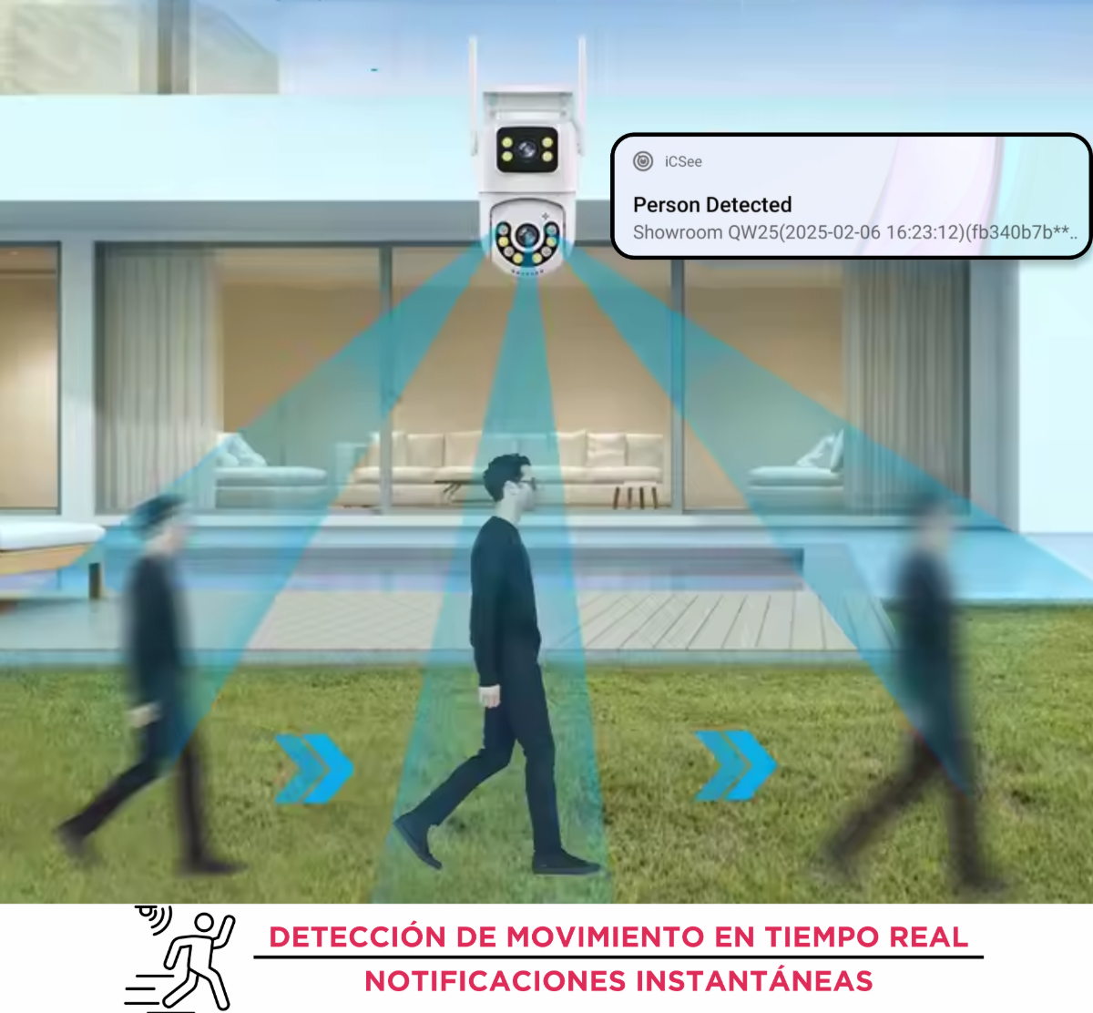 Detección de movimiento y alertas de luz roja y azul: