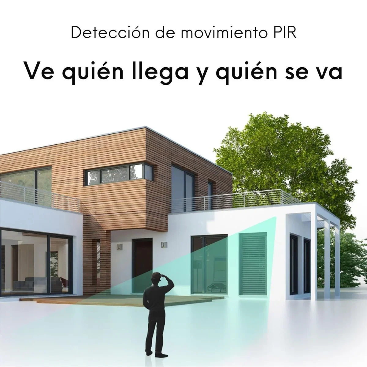 - Mira quien va y viene con la detección de movimiento PIR. Capture personas y animales con grabaciones de video activadas por movimiento de 12 segundos que se guardan automáticamente en la nube durante 14 días gratis