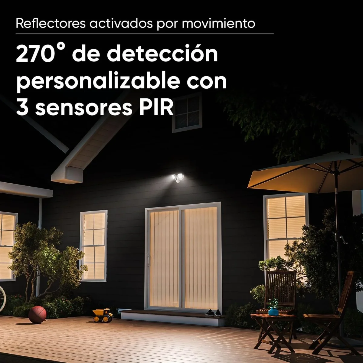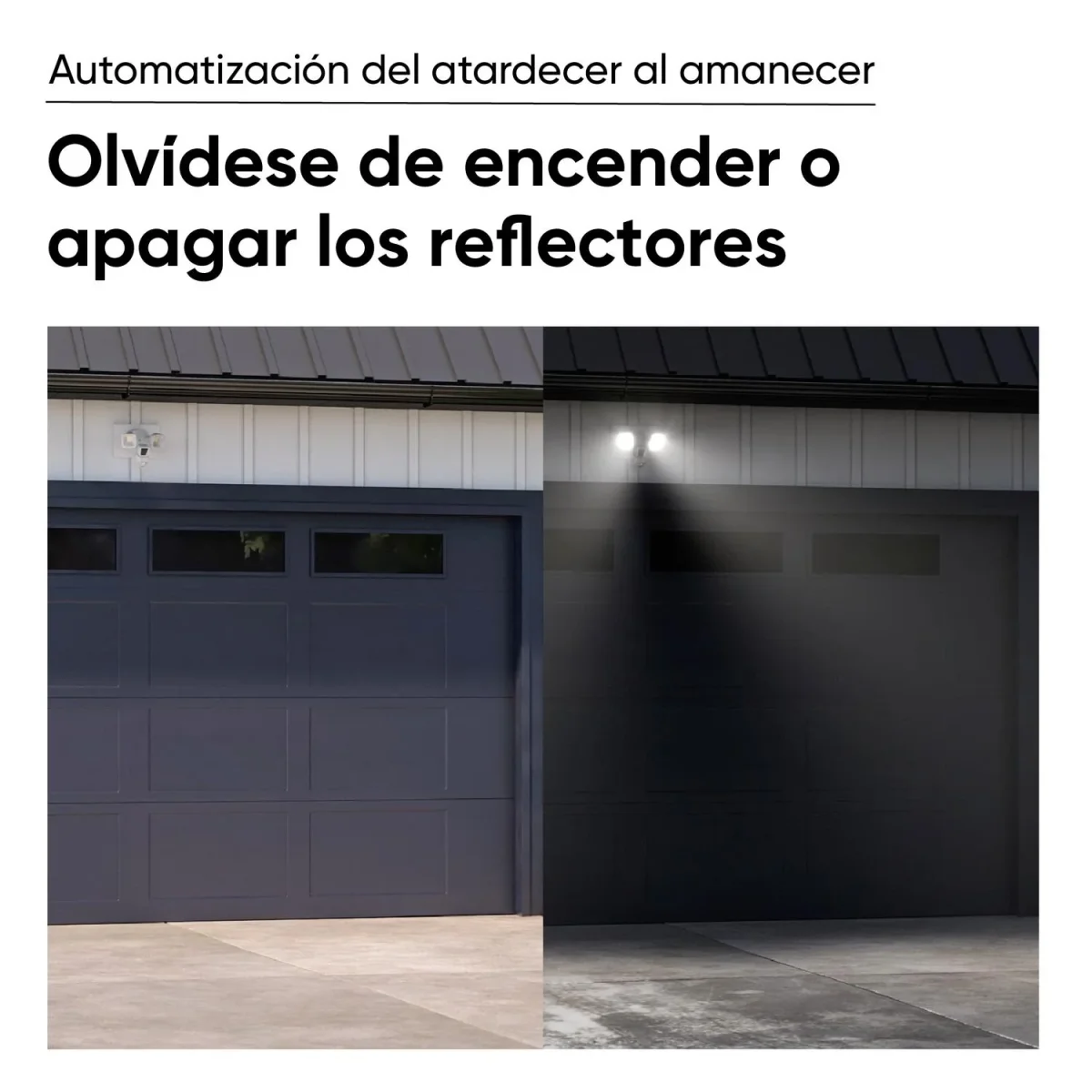 Seguridad brillante e inteligente. La cámara de seguridad Floodlight con sensor de movimiento y reflectores extrabrillantes detectan a cualquier persona y mucho más. Con la automatización de horarios, la cámara sabe cuándo anochece y prende las luces o amanece y las apaga. Graba y guarda snapshots al momento que detecta movimiento. Incluye una sirena que podrás controlar desde la aplicación Wyze.