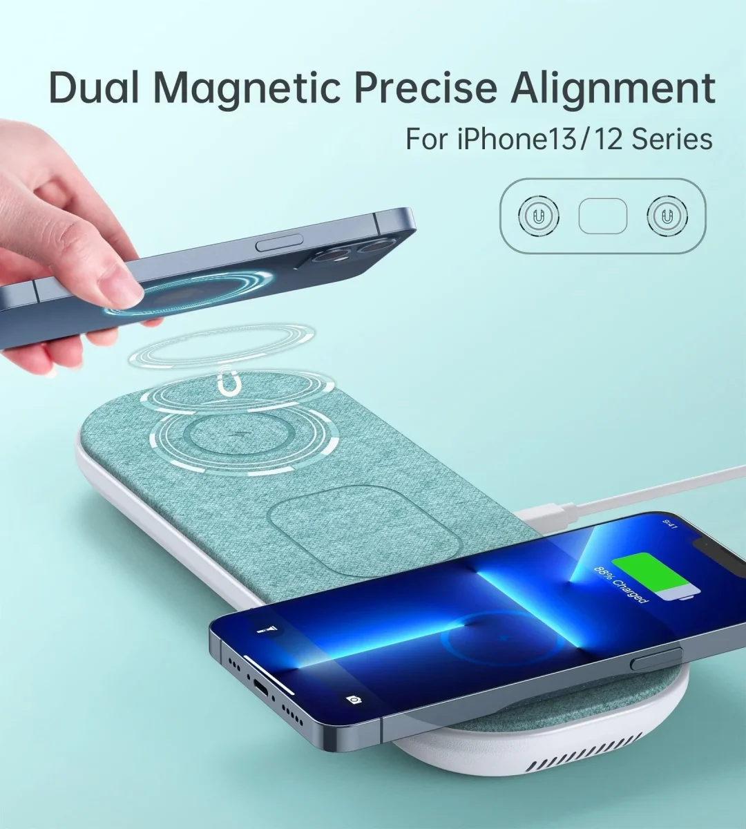 La carga rápida segura y el posicionamiento magnético preciso brindan un excelente rendimiento de carga para iPhone 12/12 mini/12 pro/12 pro max. Y también es compatible con estuches para teléfonos magnéticos y airpods con estuche de carga inalámbrica, así como con otros dispositivos habilitados para Qi. La experiencia de alineación magnética solo se aplica a la serie iPhone 12.