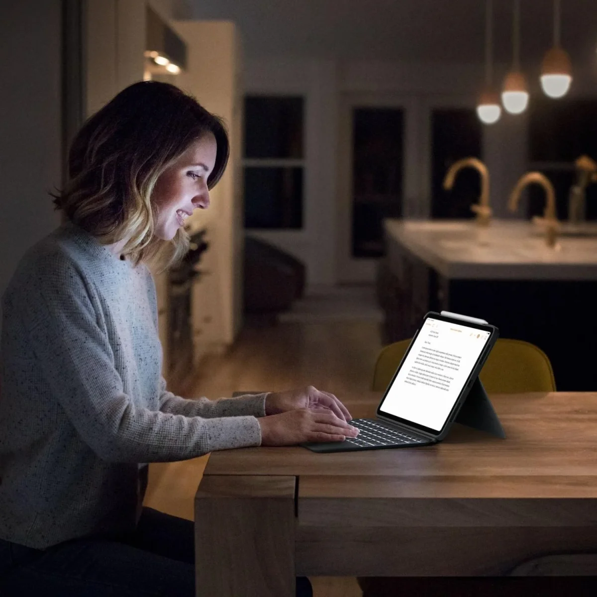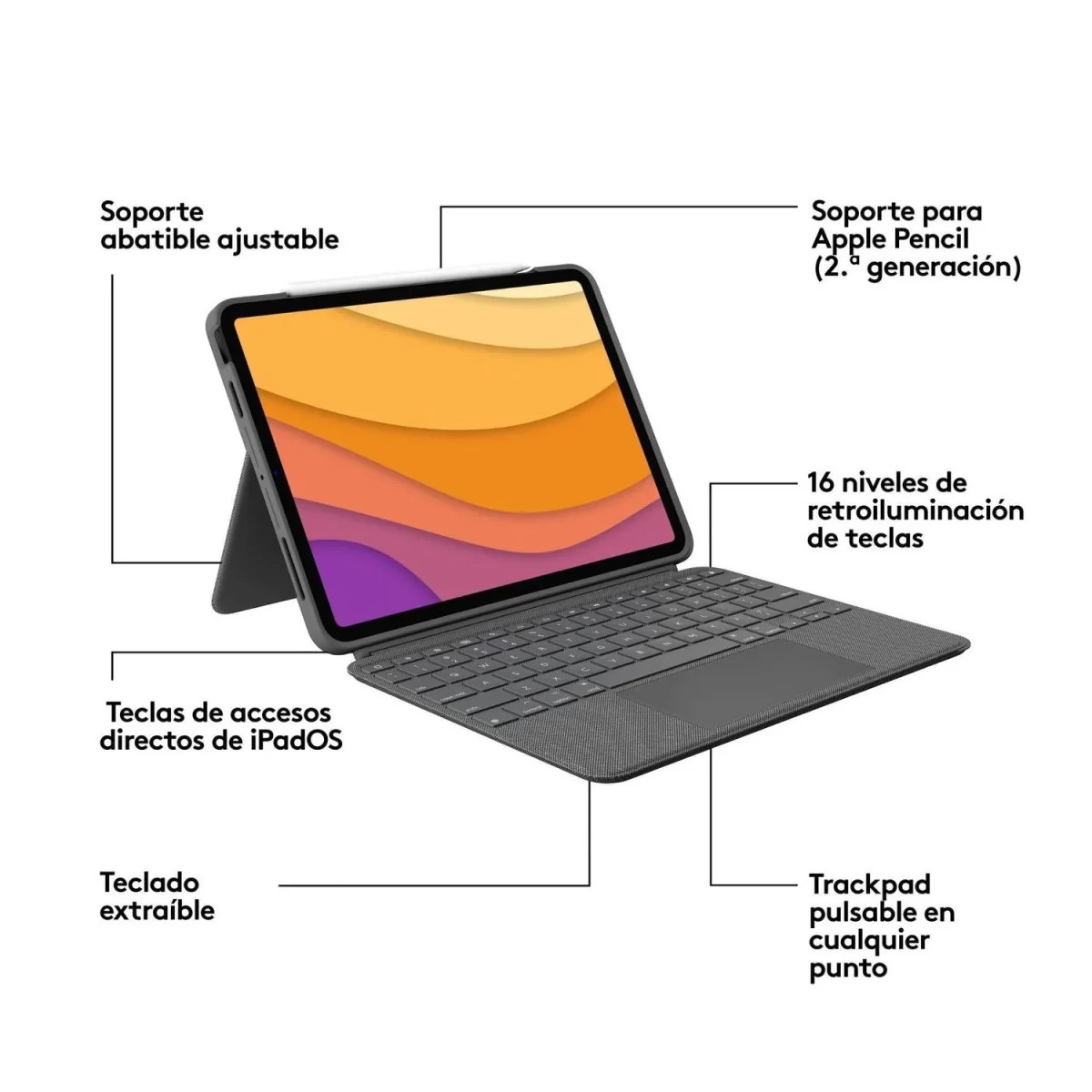 El Combo Touch te ofrece una funda con teclado retroiluminado táctil con nuevos niveles de versatilidad. Escribe, visualiza, dibuja y lee con la tableta. Estará totalmente protegida, incluidas las esquinas, la parte frontal y posterior. Con el nuevo trackpad pulsable en cualquier punto y el teclado de Logitech, estilo laptop, puedes trabajar y crear. Compatible con iPad Air Gen 4. No incluye dispositivo ni pencil.