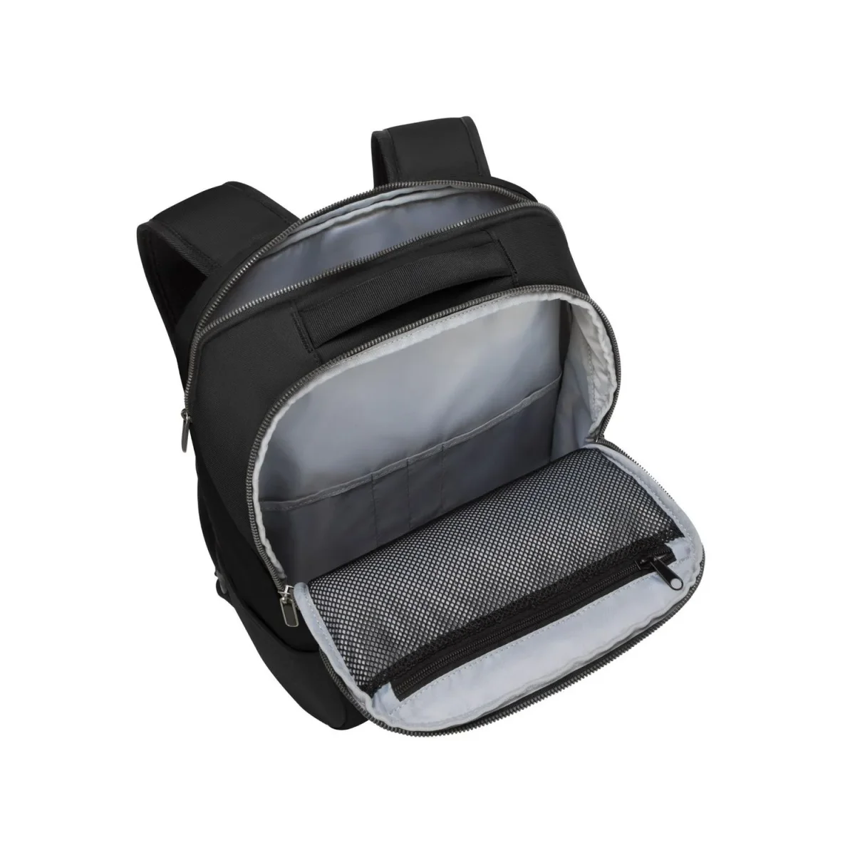 Delgada y elegante, la mochila Urban Essential ™ de 15,6” es una versión refrescante de la mochila clásica. Con líneas limpias y un interior minimalista, la mochila ofrece protección y organización esenciales en un marco ligero. Más que solo una buena apariencia, esta mochila ofrece correas para los hombros contorneadas y un panel trasero acolchado para mayor comodidad y una correa para el carrito para guardarla sin problemas en el equipaje con ruedas. Con bolsillos laterales de malla para botellas de agua y un bolsillo oculto en la parte delantera, sus características son sutiles pero profundas.