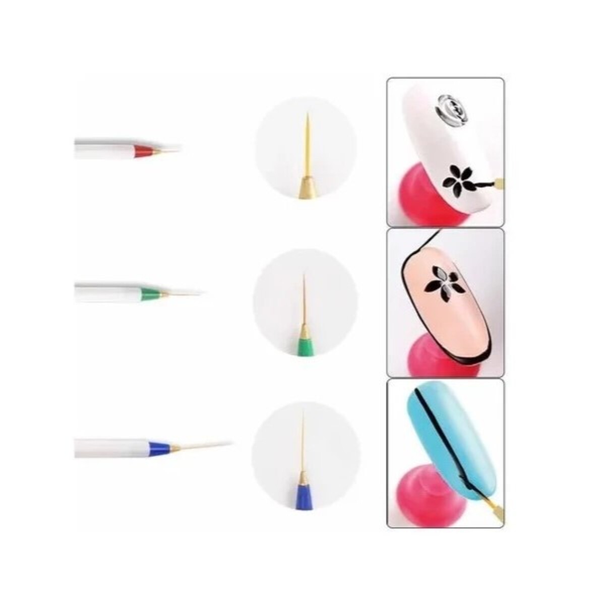 El set Pincel Liner X3 incluye tres pinceles finos diseñados para trazos precisos en decoración de uñas. Su mango ergonómico y cerdas de alta calidad permiten un control total en cada diseño, ideal para profesionales y amantes del nail art.