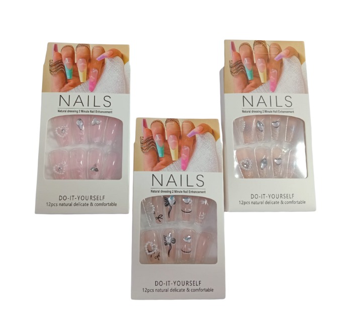 Uñas Postizas NAILS – Pack x12 Natural con Adornos